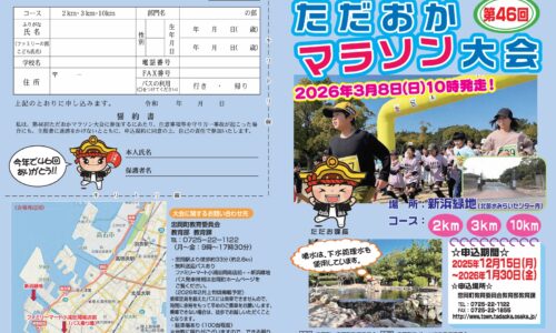 忠岡町で開催される「第46回ただおかマラソン大会」の参加申込期間が、2026年2月16日(月)まで延長されました。大会は3月8日(日)に開催され、小学生から一…