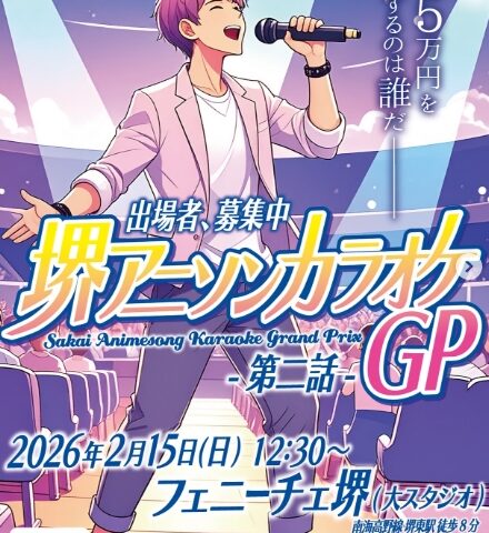 堺東駅近くのフェニーチェ堺で2月15日(日)、アニメソング限定のカラオケ大会「堺アニソンカラオケGP‐第二話‐」が開かれます。優勝賞金は5万円です。会場は南海高野線・堺東駅西出口から徒歩約8分のフェニーチェ堺・大スタジオ。開始は12時30分予定です。同イベントは2025年2月に第1回が開催され、今回が第2回。賞金は以下の通りです。優勝:50,…
