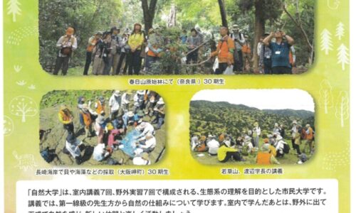 NPO法人「自然と緑」は、生態系や自然との共生を体系的に学ぶ「自然大学」第31期の受講生を募集している。毎日新聞社などが後援。講義と野外実習を組み合わせた市民…
