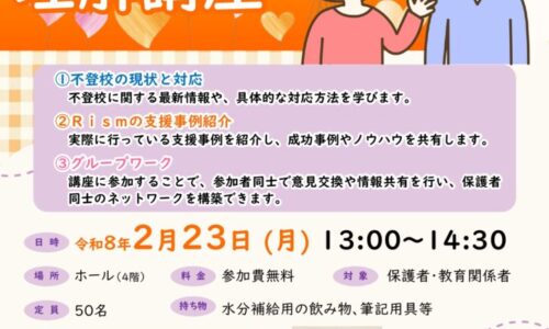 【堺市堺区】2/23開催「保護者のための不登校理解講座」 青少年センターで無料実施