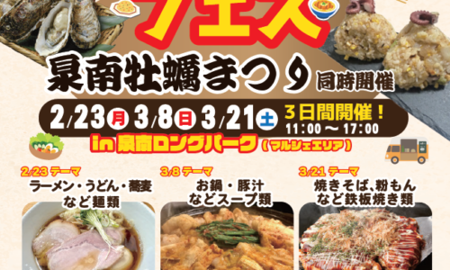 【泉南市】2/23・3/8・3/21「あったかいもんフェス」開催 麺・スープ・鉄板が集結