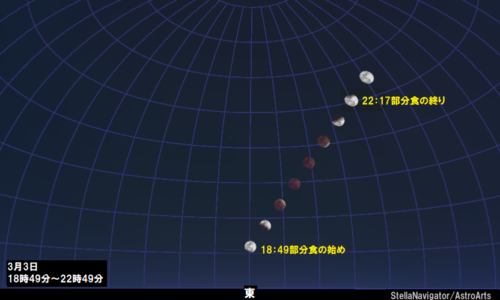 3月3日(火)のひな祭りの夜、日本全国で皆既月食が起きる。夜の比較的早い時間帯に進行するため、天候に恵まれれば各地で観察が可能。国立天文台はライブ配信も予定し…