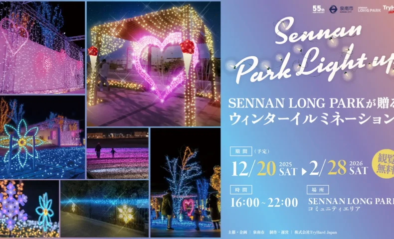 大阪府泉南市のSENNAN LONG PARK(泉南りんくう公園)で、冬のイルミネーションイベント「Sennan Park Light up vol.6」が開催される。期間は12月20日から2026年2月28日まで。主催は泉南市で、制作・運営は株式会社TryHard Japanが担う。