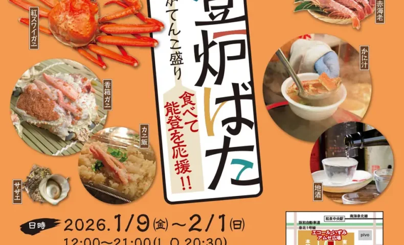 能登半島地震および豪雨災害からの復興支援を目的とした食のイベント「出張 能登炉ばた」が、大阪府和泉市のエコール・いずみ特設会場で開催される。