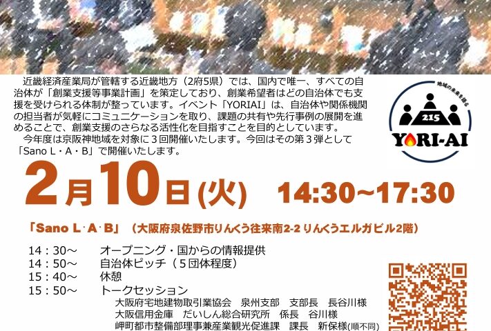 2月10日 創業支援担当者向けイベント「YORIAI@泉佐野」を開催します!