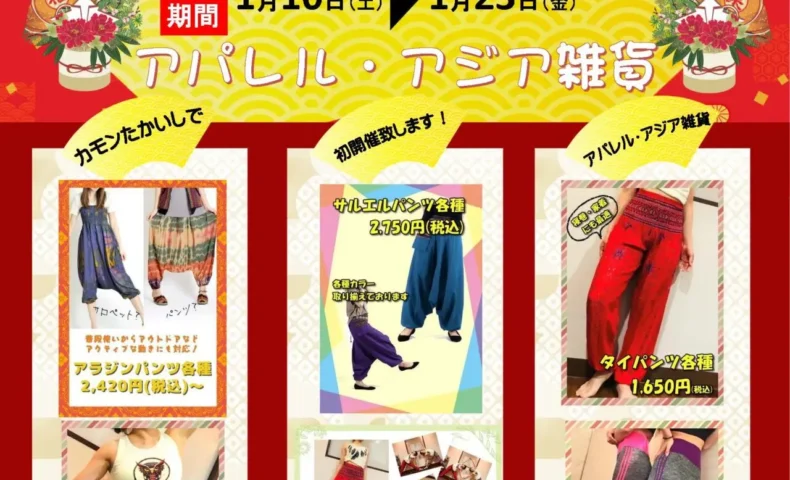 【高石市】1/10-23アパレル・アジア雑貨販売会がカモンたかいしで開催されます!