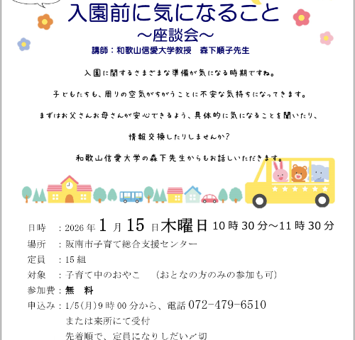1月の講座は「入園前に気になること ~座談会~」。入園準備についての疑問や不安を共有する内容となっている。