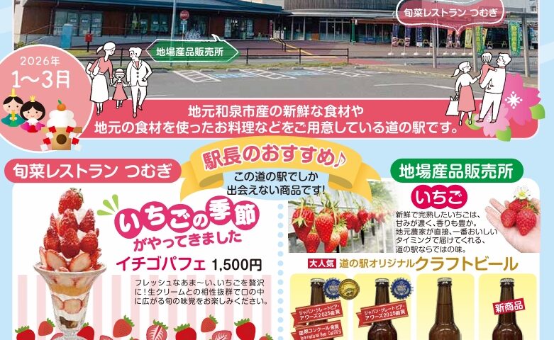 和泉市仏並町の道の駅いずみ山愛の里では、2026年1月~3月にかけて、旬のグルメやお得なイベントが盛りだくさん。駅長おすすめメニューに加え、平日限定企画や割引デーなど、見逃せない内容となっています。