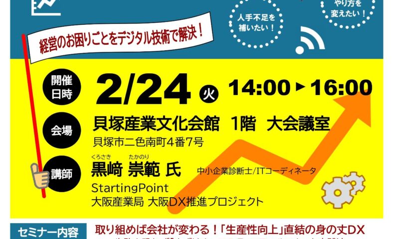 貝塚市は、市内事業者を対象にしたDX(デジタルトランスフォーメーション)セミナーを、2月24日(火)に開催する。