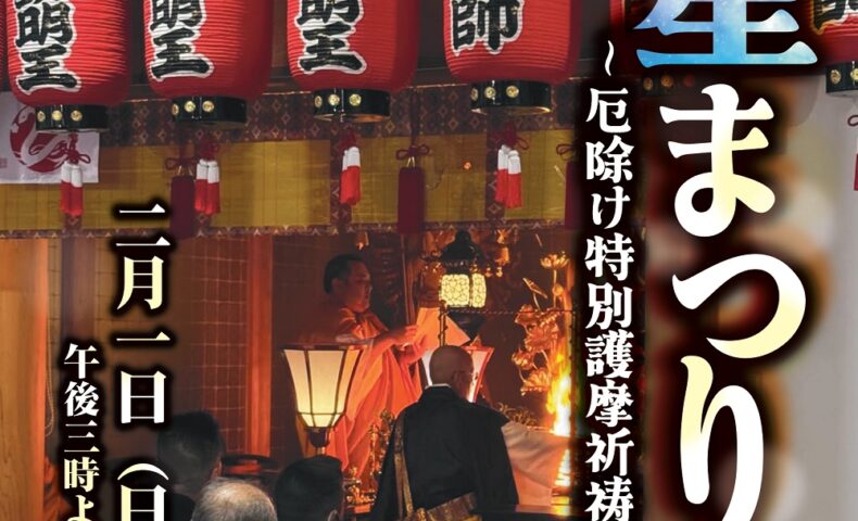 泉南市の長慶寺で、2月1日(日)に恒例の「節分星祭(星まつり)」が開催される。毎年多くの参拝者でにぎわう行事で、今年も護摩祈祷と福餅まきが予定されている。