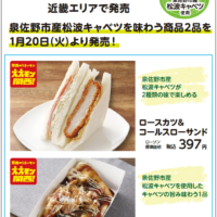 泉佐野市の特産品「松波キャベツ」を使用したサンドイッチと惣菜が、1月…