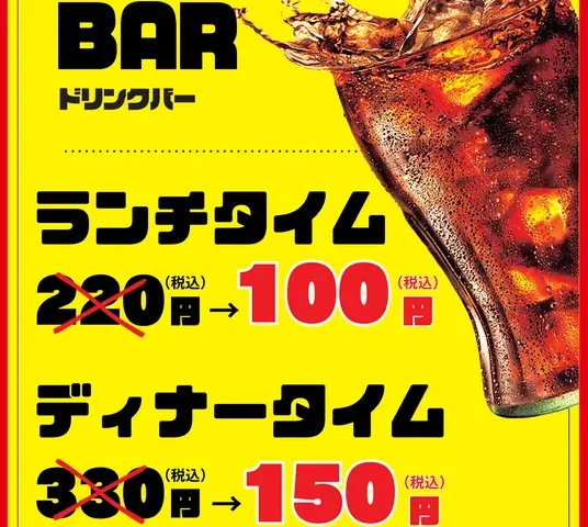 今回の第2弾では、ドリンクバーが大幅値下げ。