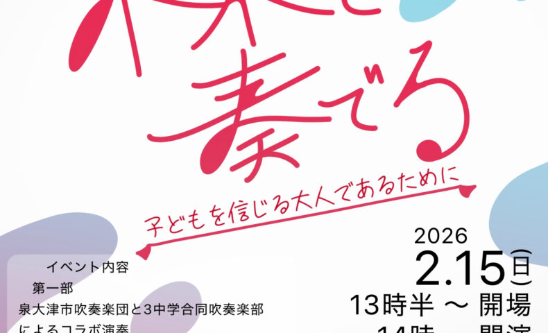 第一部では、泉大津市吹奏楽団と、市内3中学校(東陽中・誠風中・小津中)の合同吹奏楽部による演奏が披露されます。