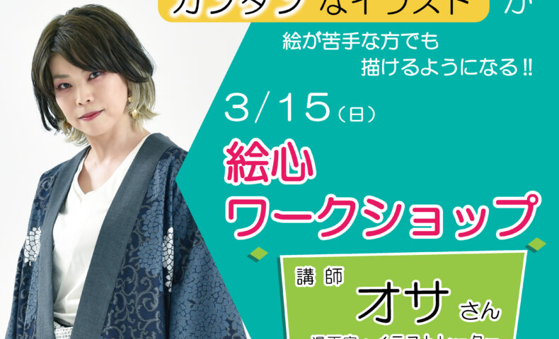 泉佐野市市場東にある泉佐野市立文化会館「エブノ泉の森ホール」で、漫画家・イラストレーターのオサさんによる「絵心ワークショップ」が開催される。