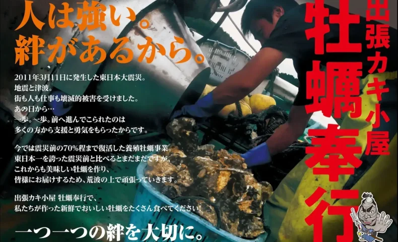「牡蠣奉行」は、東日本大震災で販路に苦しんだ東北の牡蠣を多くの人に味わってもらうことを目的に始まった復興支援イベントで、現在も全国各地で開催されている。