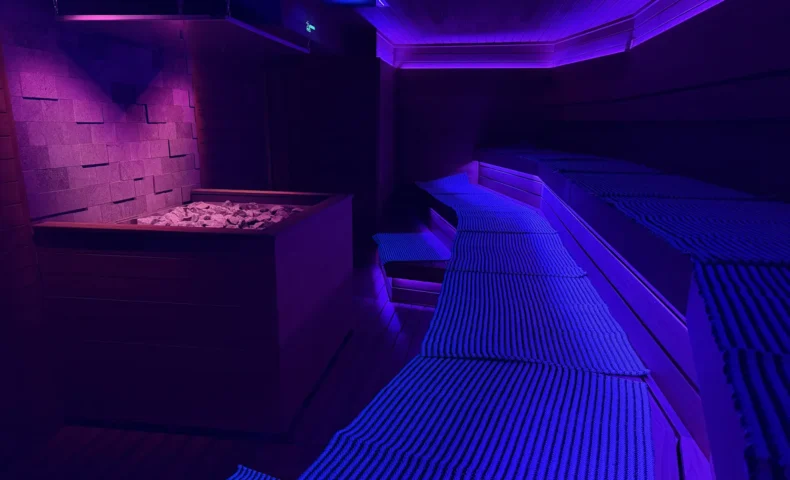 施設の特徴は、光・音・香り・温度を組み合わせた「没入型サウナ空間」。館内には大小のサウナ室のほか、水風呂、ミストサウナ、ととのいスペースを備える。照明を抑えた空間設計や重厚感のある素材を用い、身体だけでなく心理面でも“ととのう”体験を目指すとしている。