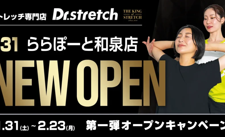 独自技術「コアバランスストレッチ」を提供するストレッチ専門店**「Dr.stretch(ドクターストレッチ)」**が、1月31日、ららぽーと和泉(和泉市)に新店舗をオープンする。南大阪エリアへの出店は今回が初となる。
