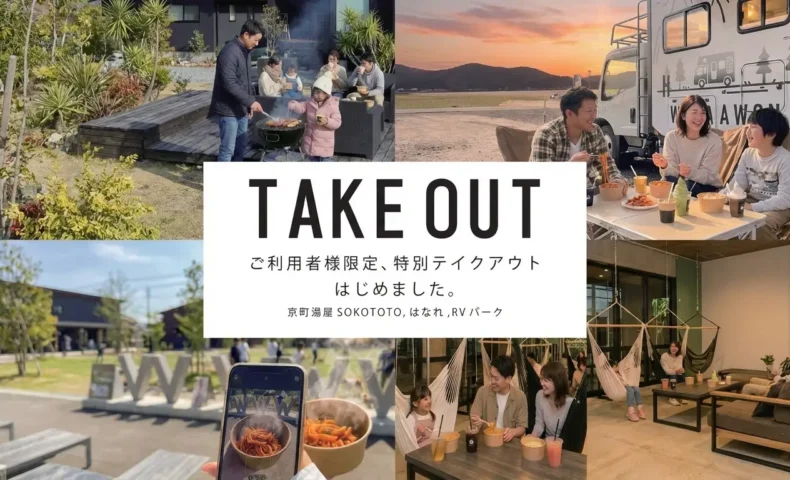 大阪府岸和田市の滞在型エンターテインメントモール「WHATAWON(ワタワン)」内にある温浴施設「京町湯屋SOKOTOTO」では、これまで館内イートイン限定で提供されていたフードメニューについて、利用者限定でのテイクアウト提供を開始しました。
