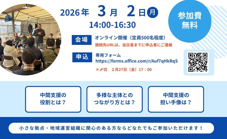 フォーラムはオンライン開催で、参加費は無料。地域づくりや自治、福祉分野に関心のある人は、2月27日(金)までに専用フォームから申し込みが可能となっている。