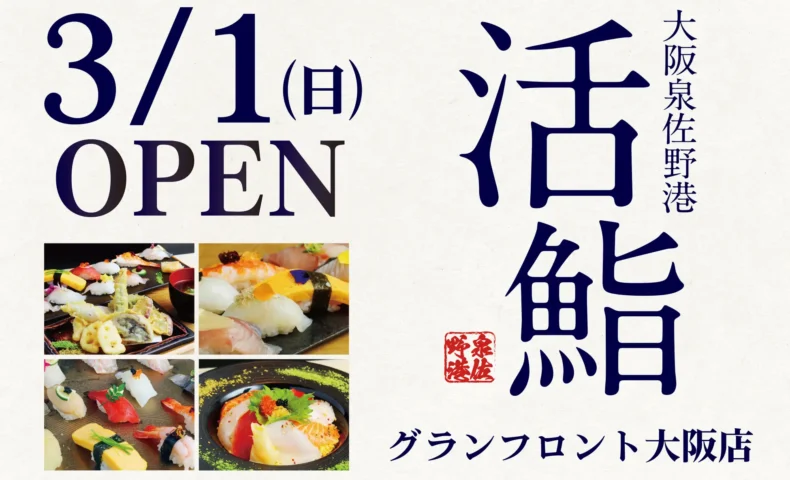2026年3月1日(日)、大阪泉佐野港 活鮨 グランフロント大阪店がグランドオープンします。