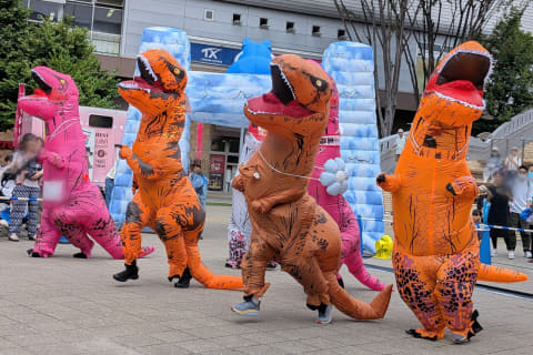 恐竜の着ぐるみを着て全力疾走する人気企画「ティラノサウルスレース」を実施。現在参加者を募集しています。
