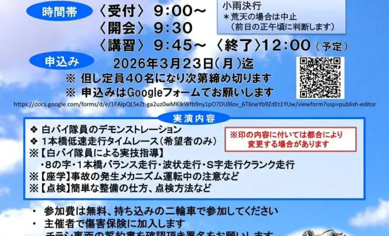 【堺市西区】2026年4月11日(土)に阪和鳳自動車学校でが開催される『白バイ隊員による安全運転講習会』の申込みが始まりました。 | 号外NET 堺市堺区・西区