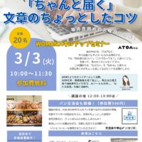 3月14日(土)午前10時~11時30分に開催。会場は青少年センター3階自習室。