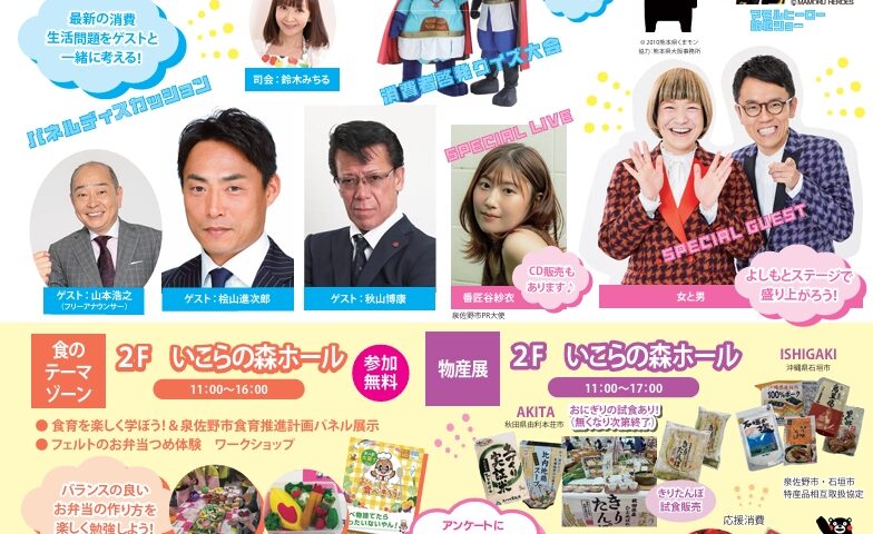 デジタル時代の消費者トラブル防止をテーマに、3月1日(日)「泉佐野市消費生活フェア2026」が開催されます。ステージイベントや講演会、物産展などを通じて、楽しく学べる啓発イベントです。