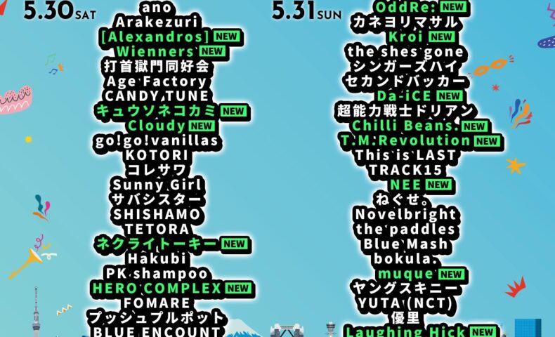東京公演は5月16日・17日に**海の森公園**で開催。大阪公演は開場9時、開演11時(予定)となっています。