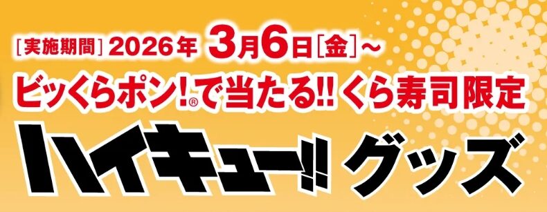 回転寿司チェーンのくら寿司(大阪府堺市)は、3月6日からアニメ「ハイキュー!!」とのコラボキャンペーンを全国店舗で開催する。限定メニューやオリジナルグッズが登場し、ファン必見の内容となっている。