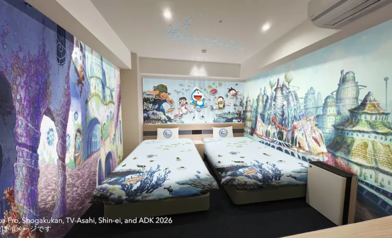 この客室は、映画に登場する海底人の国「ムー連邦」をイメージしたデザインで、ドラえもんたちが冒険する海底世界を体験できる空間となっています。宿泊者にはオリジナルポーチ、キーホルダー、ステッカーなどの特典も用意されています。