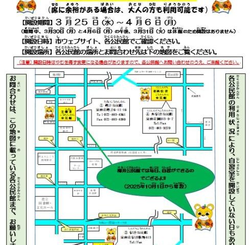 春休み期間中に自習室を開設します!!みんな来てね!!(樽井公民館では自習室を常設しています)/泉南市ウェブサイトにようこそ!