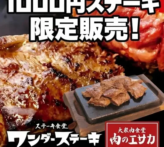 「肉のエサカ」は、自社の食肉加工工場を背景に中間コストを抑えた価格設定が特徴。一方「ワンダーステーキ」は“1000円で本格ステーキを満腹に”をコンセプトに展開しており、今回のコラボは両者の強みを掛け合わせた企画といえます。