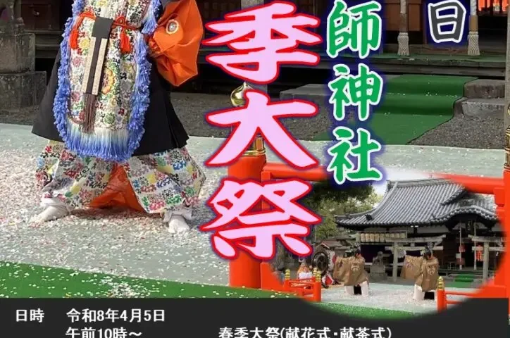 泉大津市豊中町に鎮座する泉穴師(いずみあなし)神社にて、2026年4月5日(日)、恒例の「令和8年春季大祭(春祭)」が執筆されます。美しい新緑の境内で、古式ゆかしい神事や伝統的な舞が披露される、地域の大切な行事です。