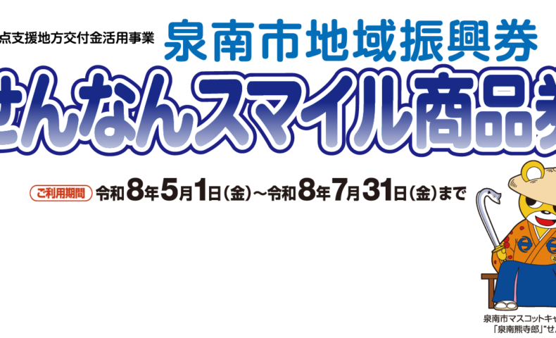 泉南市は、物価高騰への対策として、市内の加盟店で利用できる地域振興券「せんなんスマイル商品券」を全世帯へ交付することを発表しました。国の「物価高騰対応重点支援地方創生臨時交付金」を活用した事業で、家計負担の軽減と地域経済の活性化を図ります。