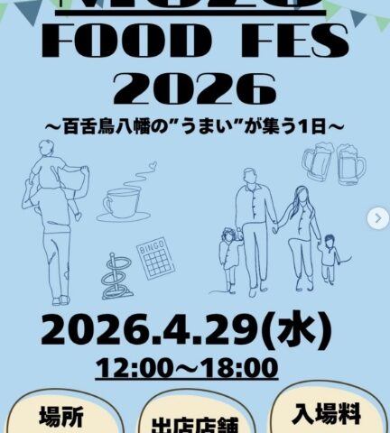 堺市堺区、百舌鳥八幡駅近くの「向陵公園」にて、2026年4月29日(水・祝)に地元グルメを満喫できる食の祭典「MOZU FOOD FES 2026」が開催されます。
