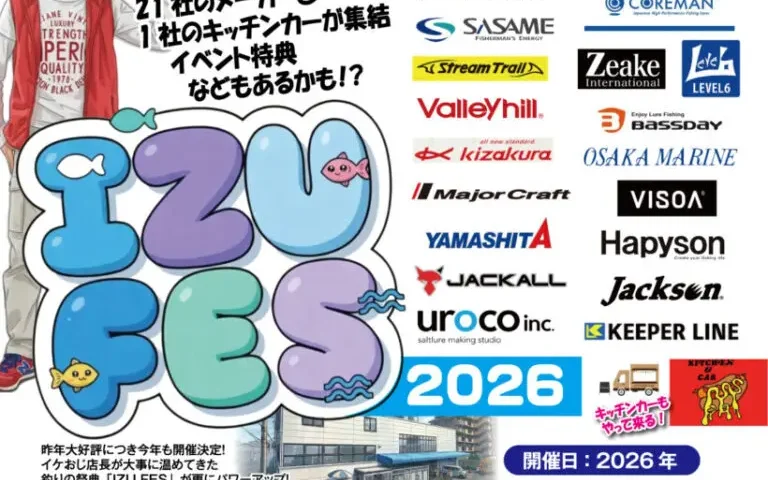 2026年4月25日(土)、泉大津市東港町の「フィッシングマックス泉大津店」にて、大規模フィッシングイベント「2026 IZU FES SPRING」が開催されます。