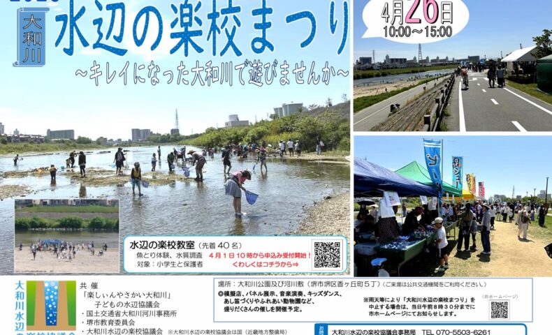 堺市堺区の大和川公園および河川敷にて、2026年4月26日(日)、「大和川水辺の楽校(がっこう)まつり2026」が開催されます。