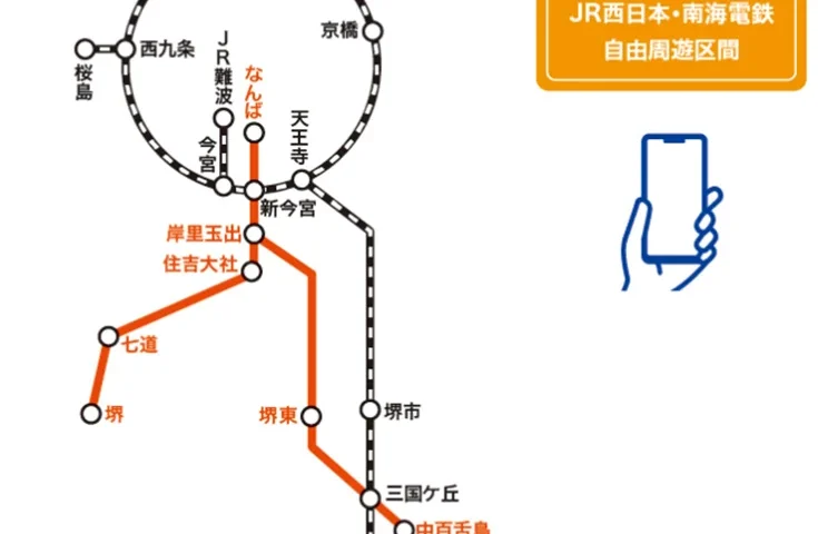 このパスは、スマートフォンのQRコードで利用できるJR・南海の乗車券と、阪堺電車・南海バスが乗り放題になる「堺おもてなしチケット」がセットになったもの。世界遺産「百舌鳥・古市古墳群」や環濠エリアの歴史スポットを、これ一枚で網羅できます。
