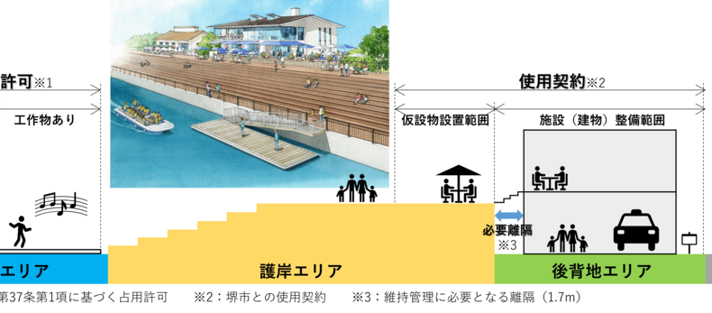 | 護岸・水面 | – | テラス席、新設桟橋(マリーナ)、水上ステージ |