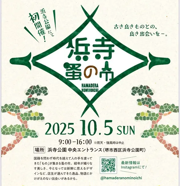 2025年10月5日(日)に、堺市西区浜寺公園にて、「第一回浜寺蚤の市」が開催されます!