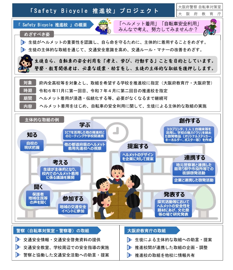 堺市は、SafetyBicycle推進校の皆さんとヘルメットの着用率向上に向けた取り組みを進めています。