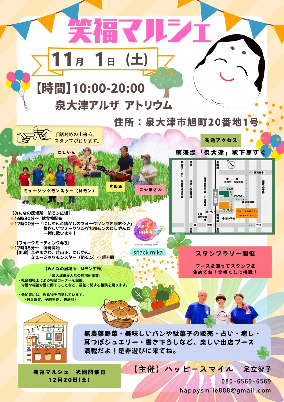 2025年11月1日(土曜日)10時から19時45分まで「笑福マルシェ」が開催されます!