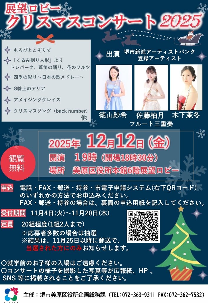 【堺市美原区】12/12(金)に「展望ロビークリスマスコンサート2025」が開催