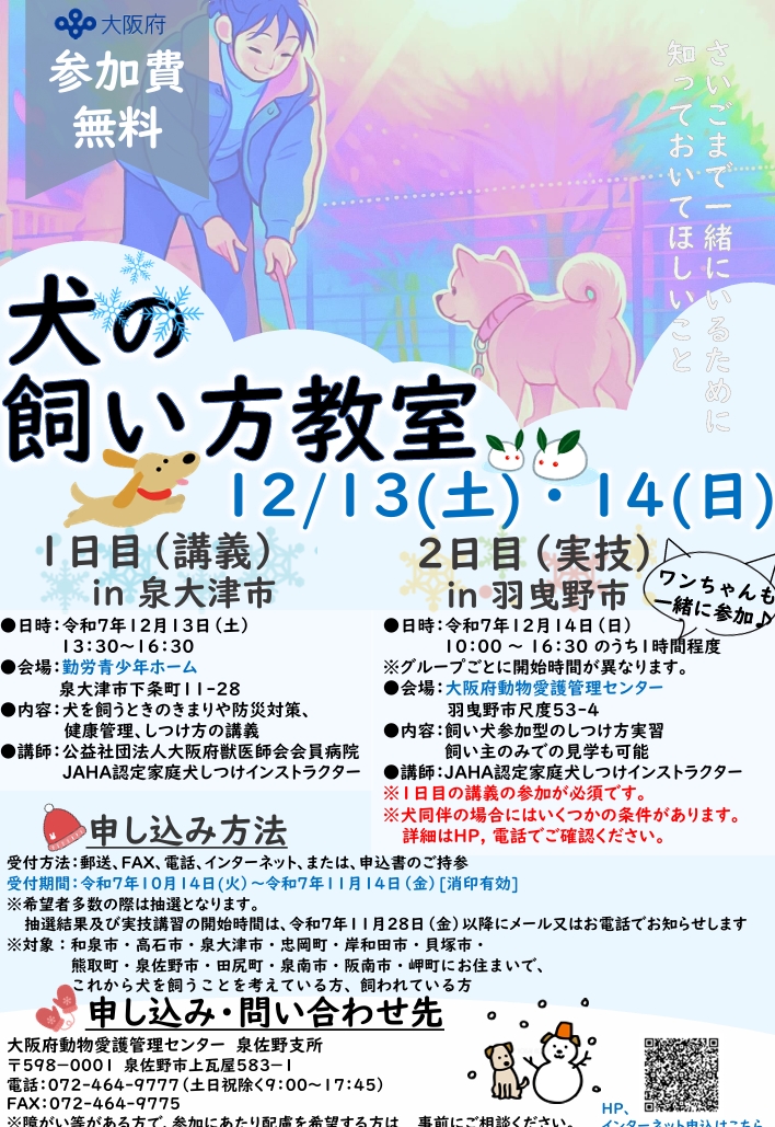 大阪府ホームページ 令和7年度犬の飼い方教室について(泉州地域対象)