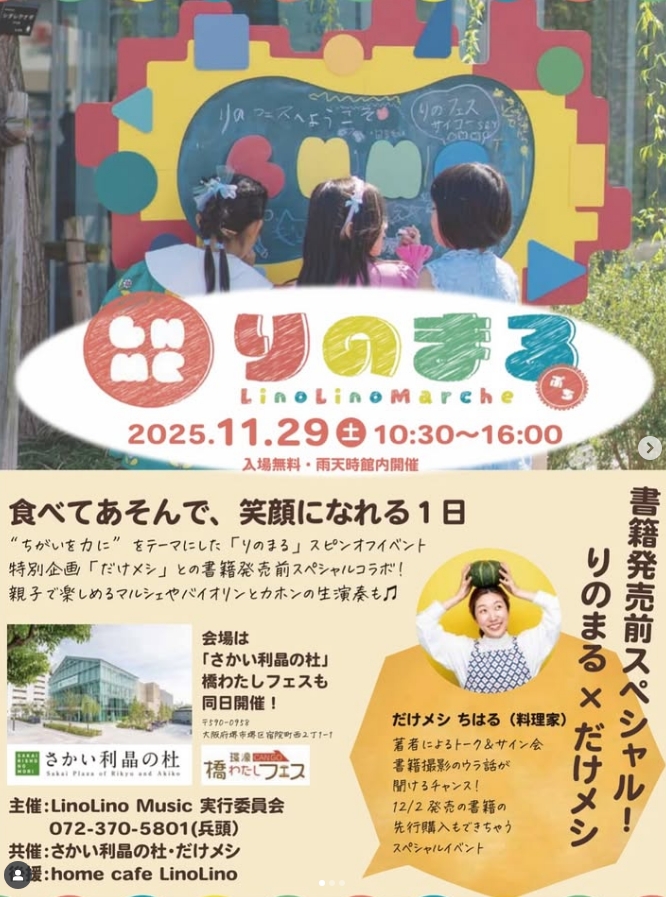 阪堺電気軌道宿院駅から歩いて約3分の場所にありますさかい利晶の杜で、2025年11月29日(土)10:30から16:00まで『りのまるぷち』が開催されます。今回のイベントは2025年4月5日(土)と6日(日)両日に開催された『りのまる~堺から世界へ!スペシャルキッズイベント~』のスピンオフイベントになっています。