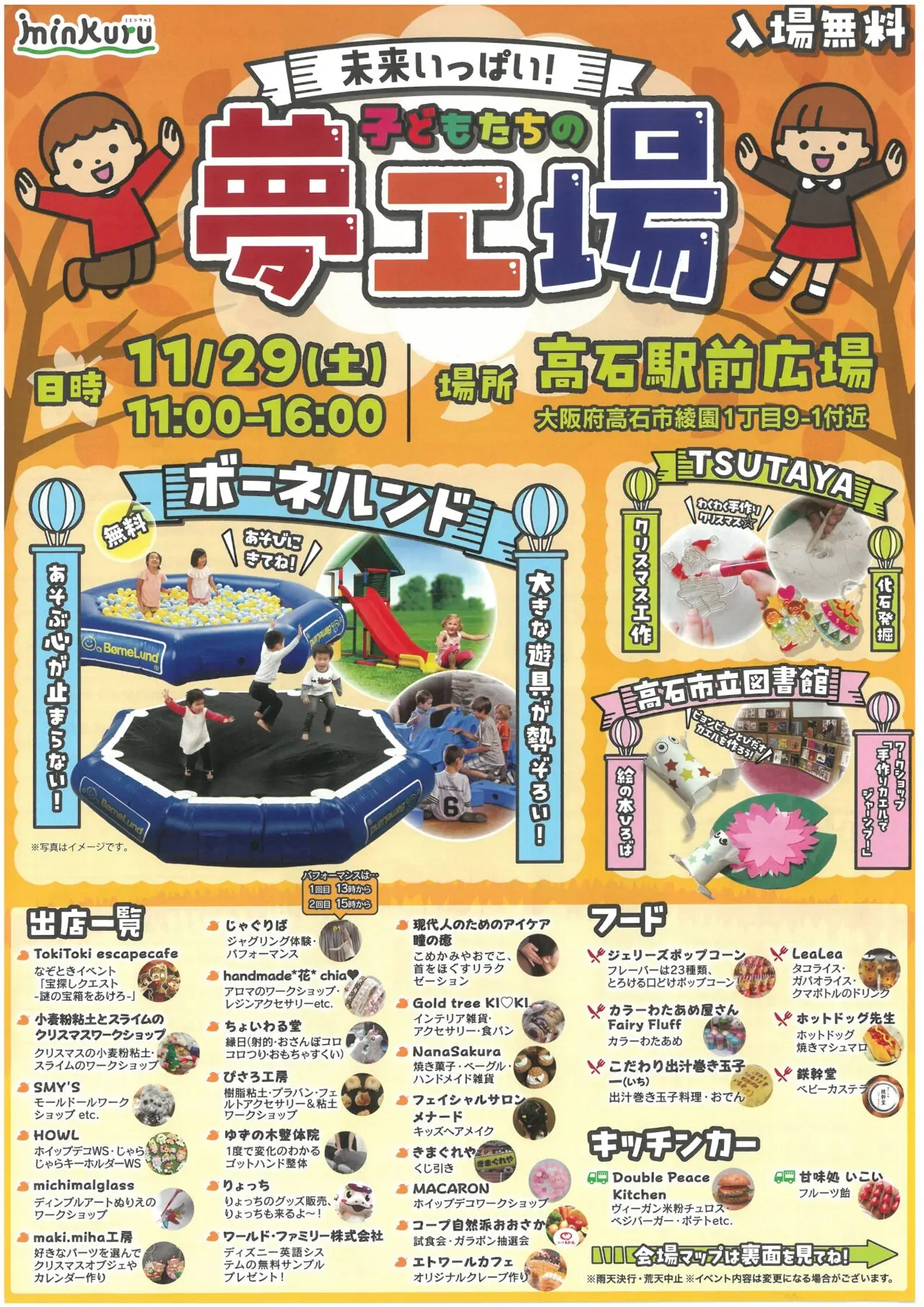 2025年11月29日(土曜日)10時から16時まで高石駅前芝生広場で