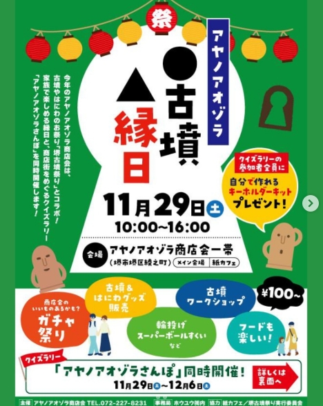 【堺市】11/29(土)に堺市綾之町商店会で「アヤノアオゾラ●古墳▲縁日」
