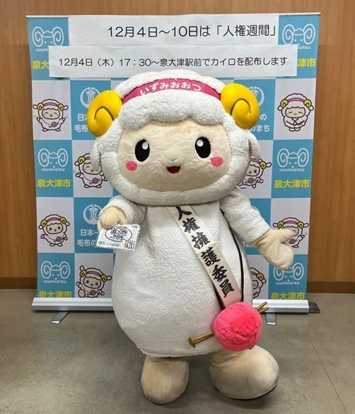 泉大津市では、12月4日(木)から始まる「人権週間」(12月4日〜10日)に合わせ、市長・人権擁護委員・人権関係団体・市職員、そして市マスコット“おづみん”が参加する街頭啓発を実施します。