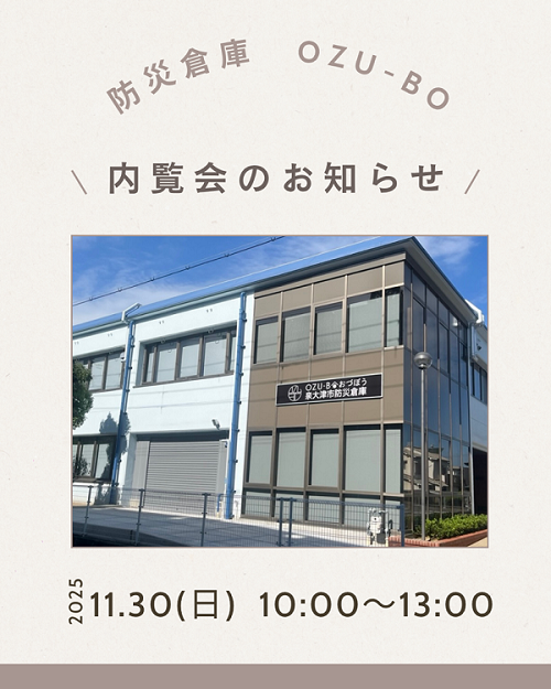 【泉大津市】11/30(日)に 新防災倉庫「おづぼう OZU-BO」の内覧会が開催
